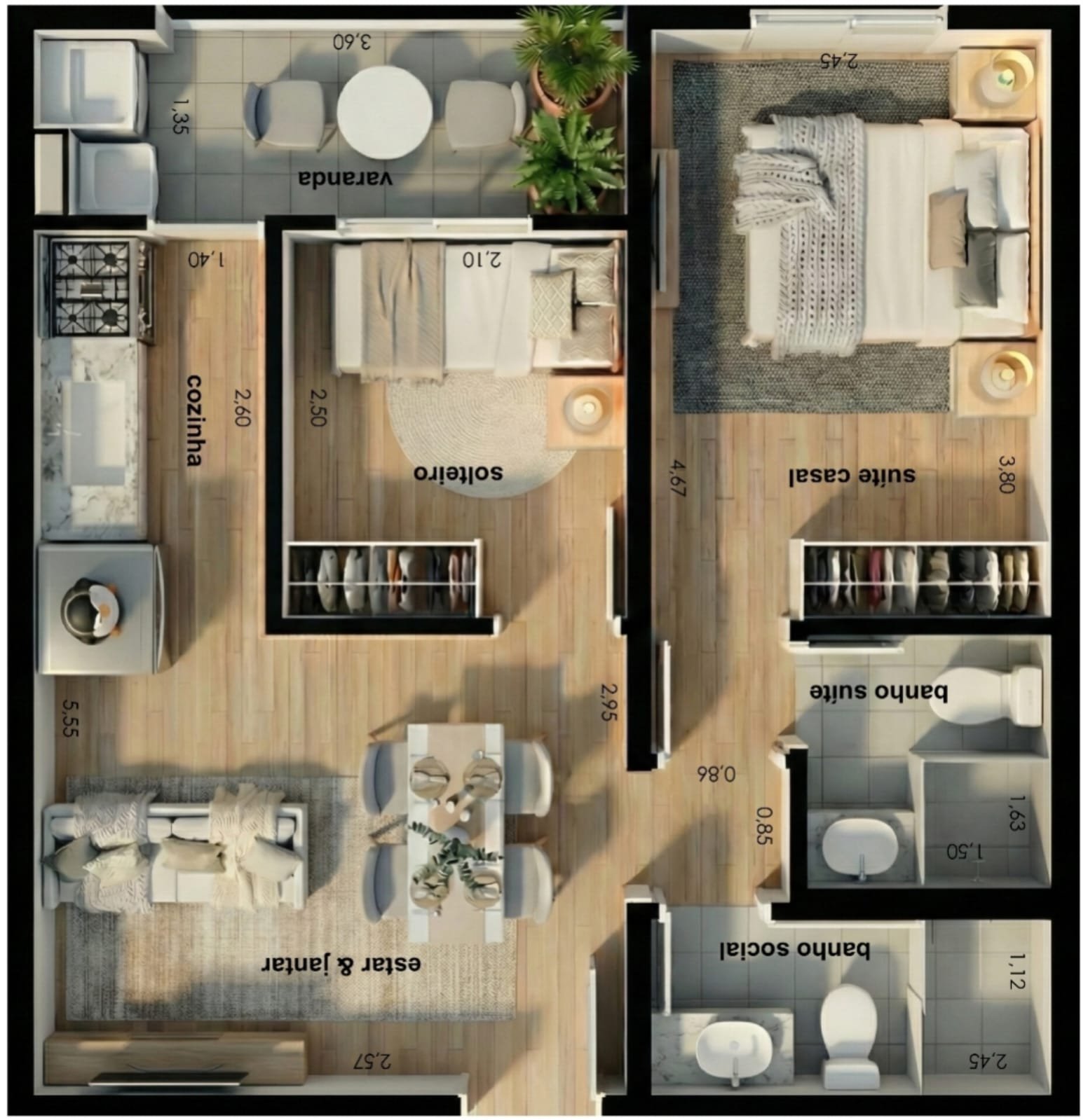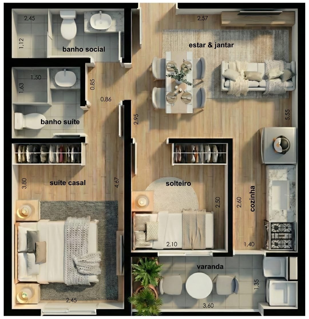 As unidades já possuem projeto de móveis planejados sob medida, adaptáveis e focados em ergonomia e sofisticação. “Contrato assinado, apartamento pronto”, maximizando seu retorno desde o primeiro dia.