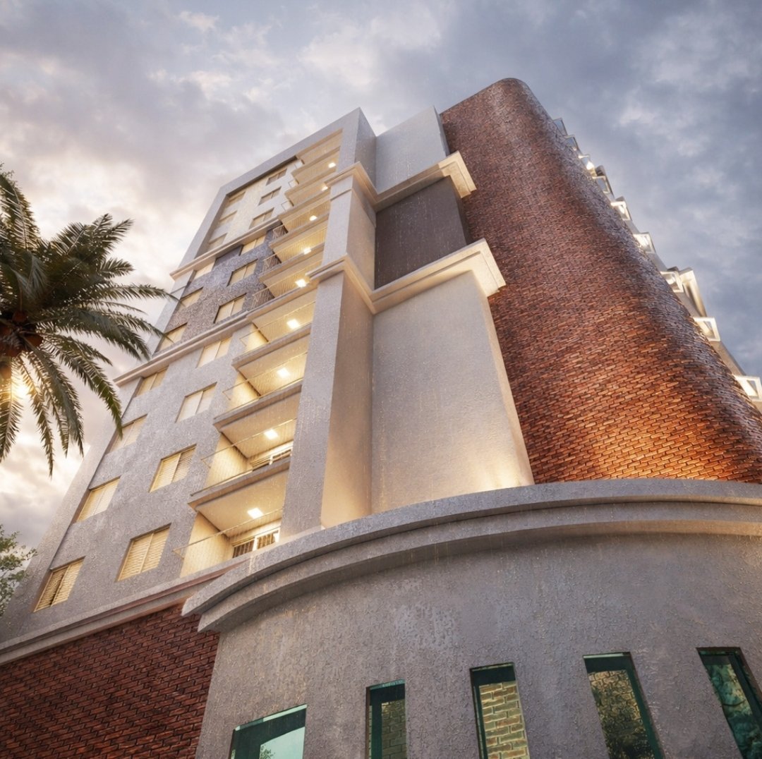 Erguido em um terreno de 837m², o empreendimento equilibra robustez e sofisticação: