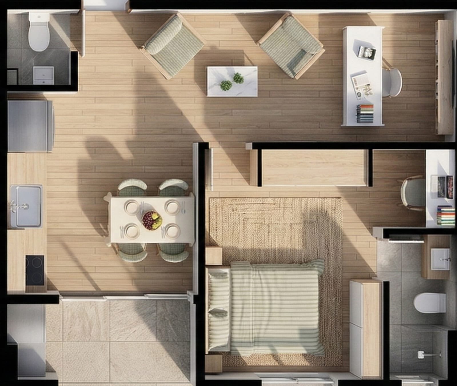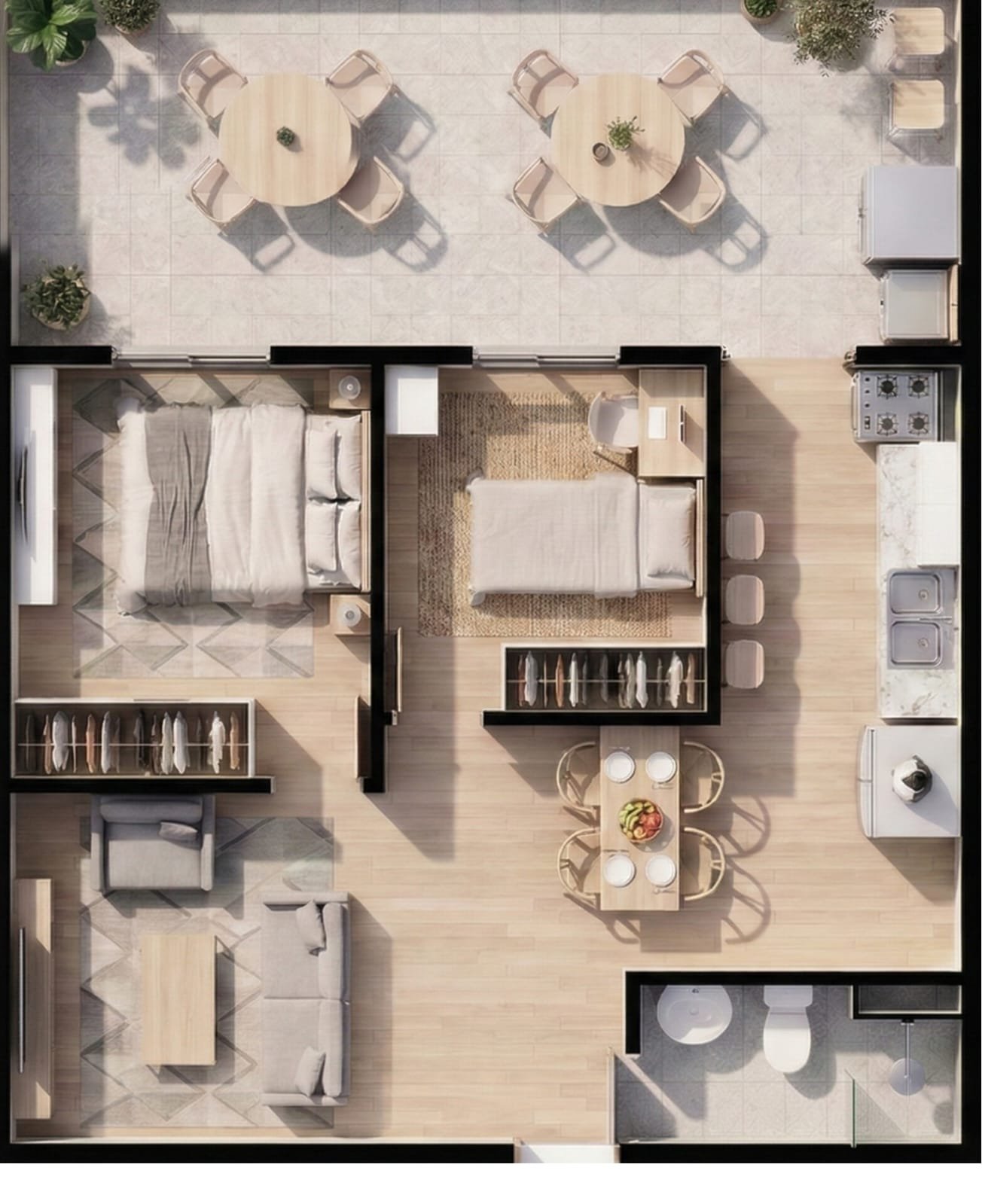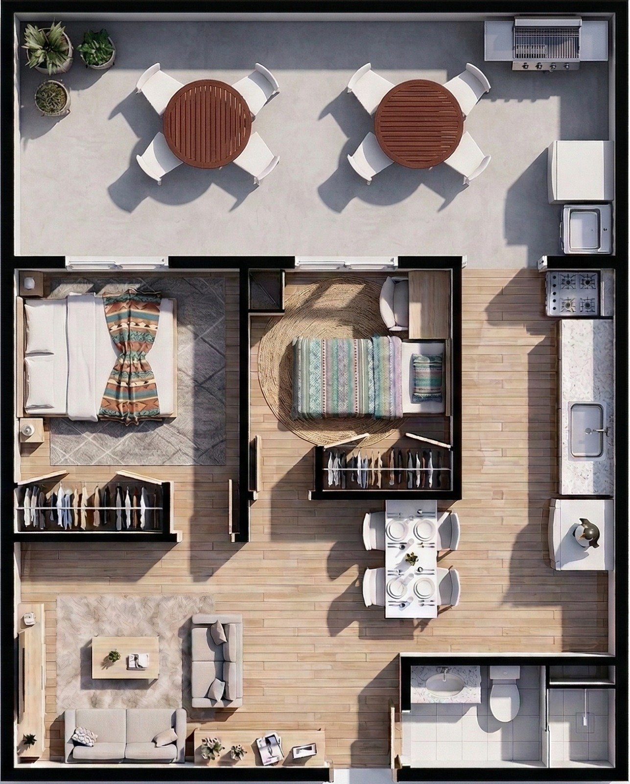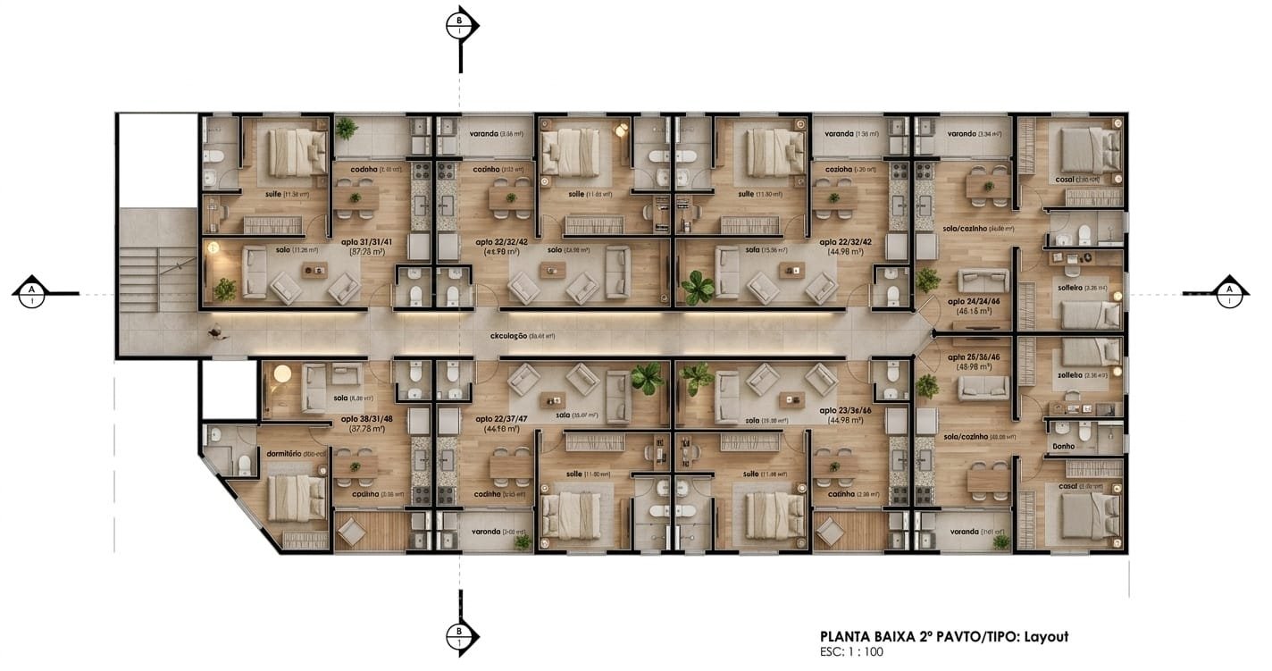 Diferencial: Studios e apartamentos funcionais desenhados para maximizar a rentabilidade por metro quadrado.
