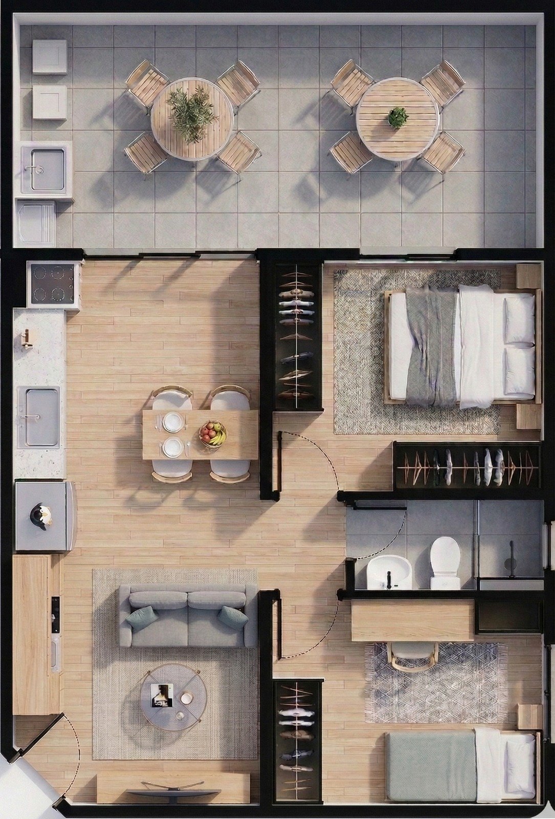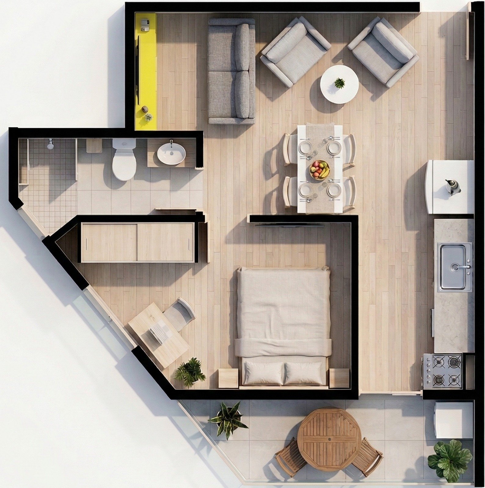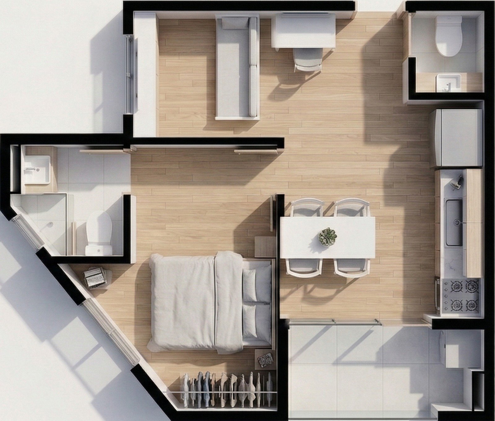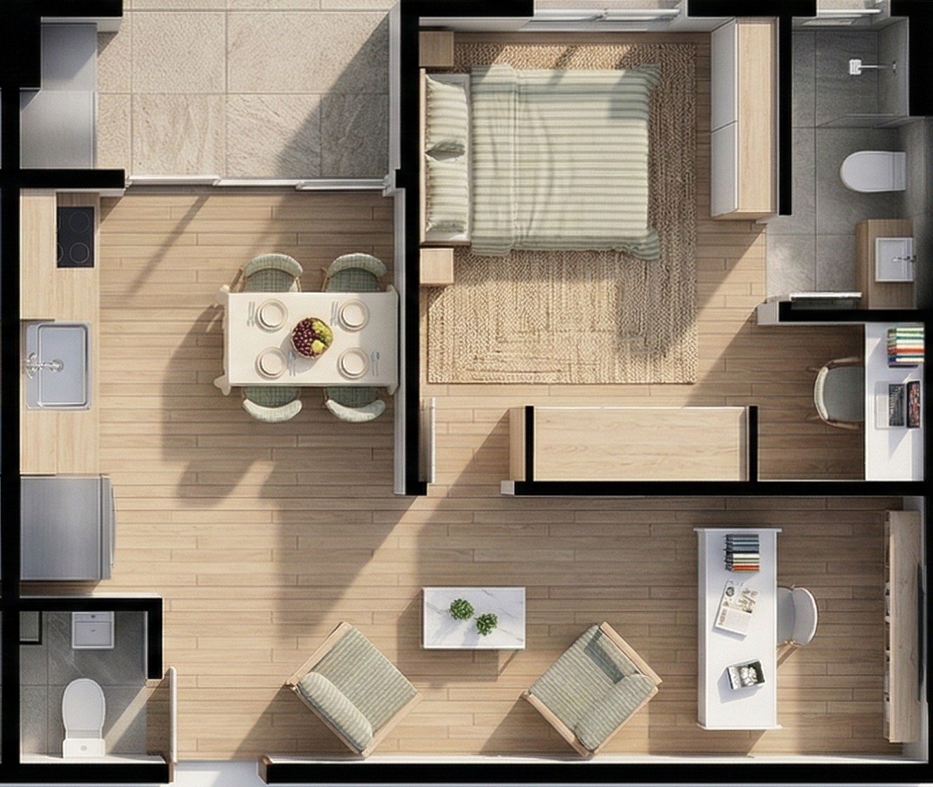 Diferencial: Studios e apartamentos funcionais desenhados para maximizar a rentabilidade por metro quadrado.