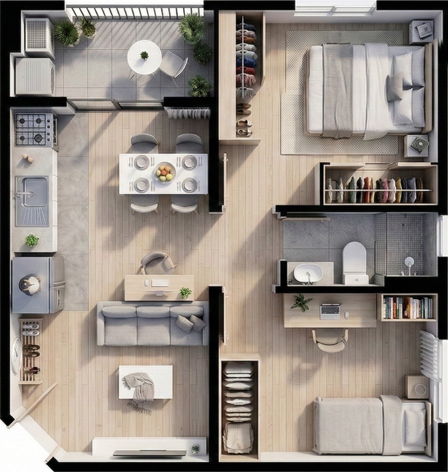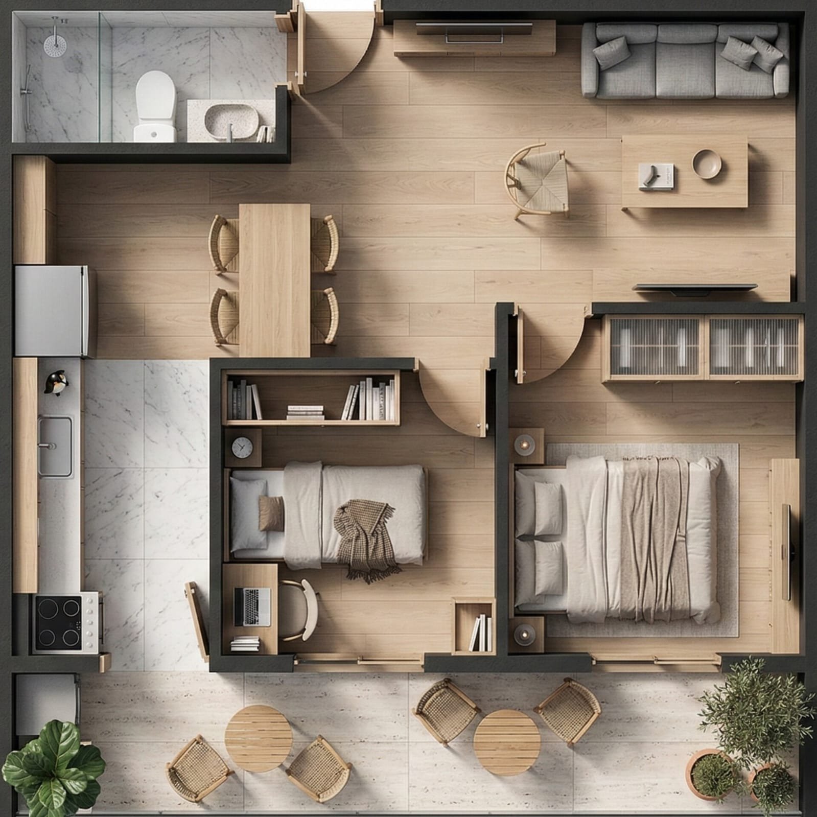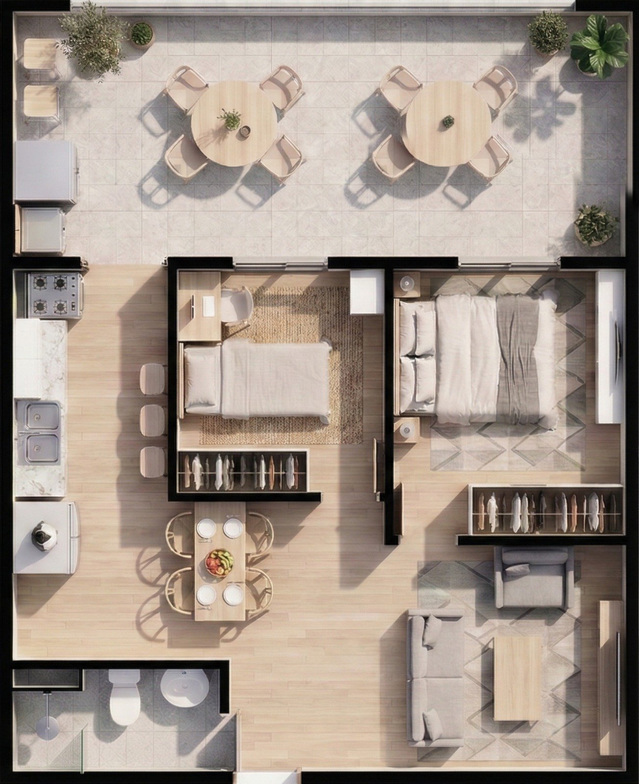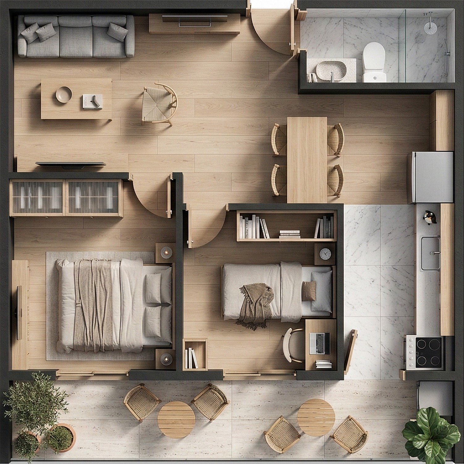 Diferencial: Studios e apartamentos funcionais desenhados para maximizar a rentabilidade por metro quadrado.